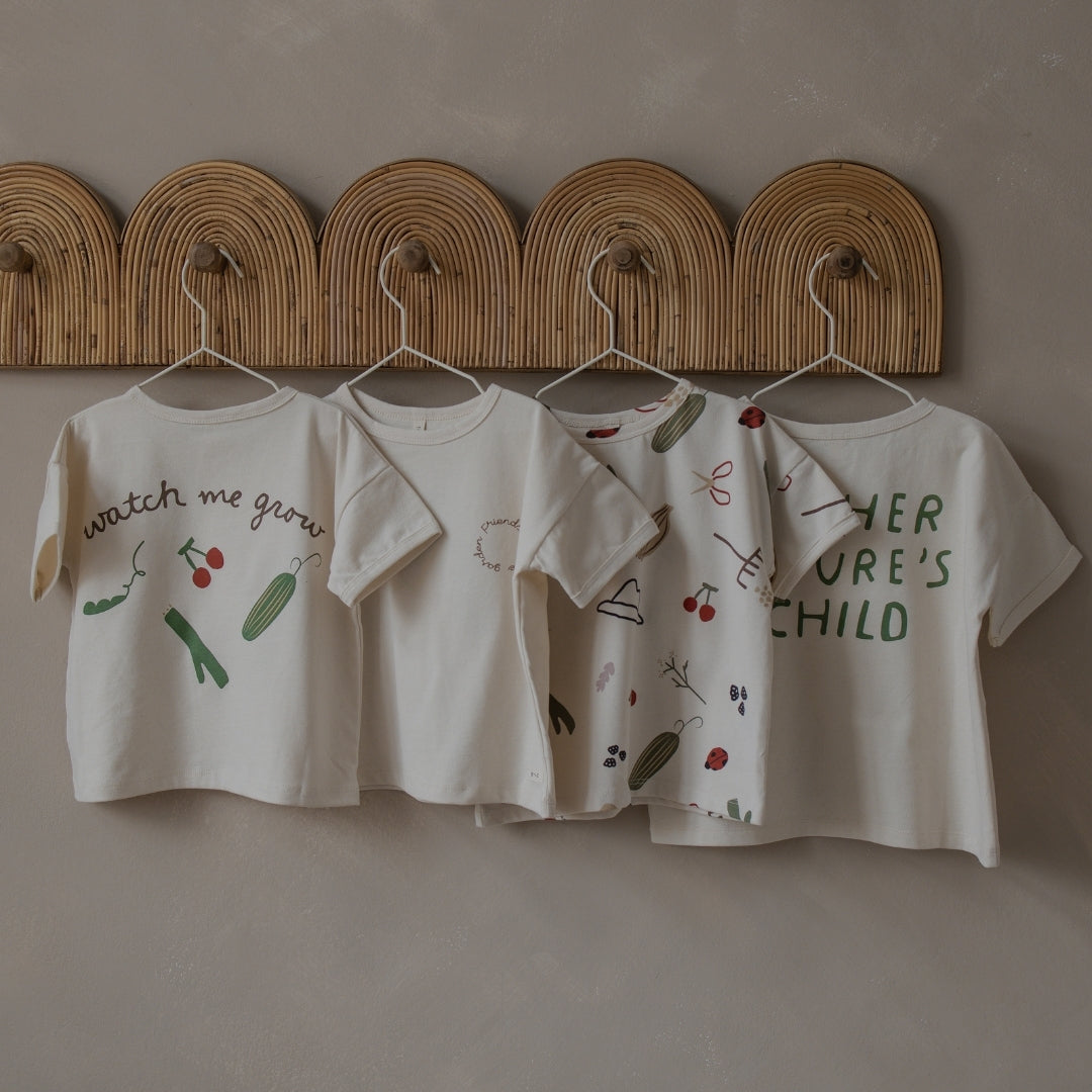 This season's collection 'Watch Me Grow' is is rooted in the quiet magic of the garden. A place where children discover the world through their senses. Slowly. Naturally. With curiosity.