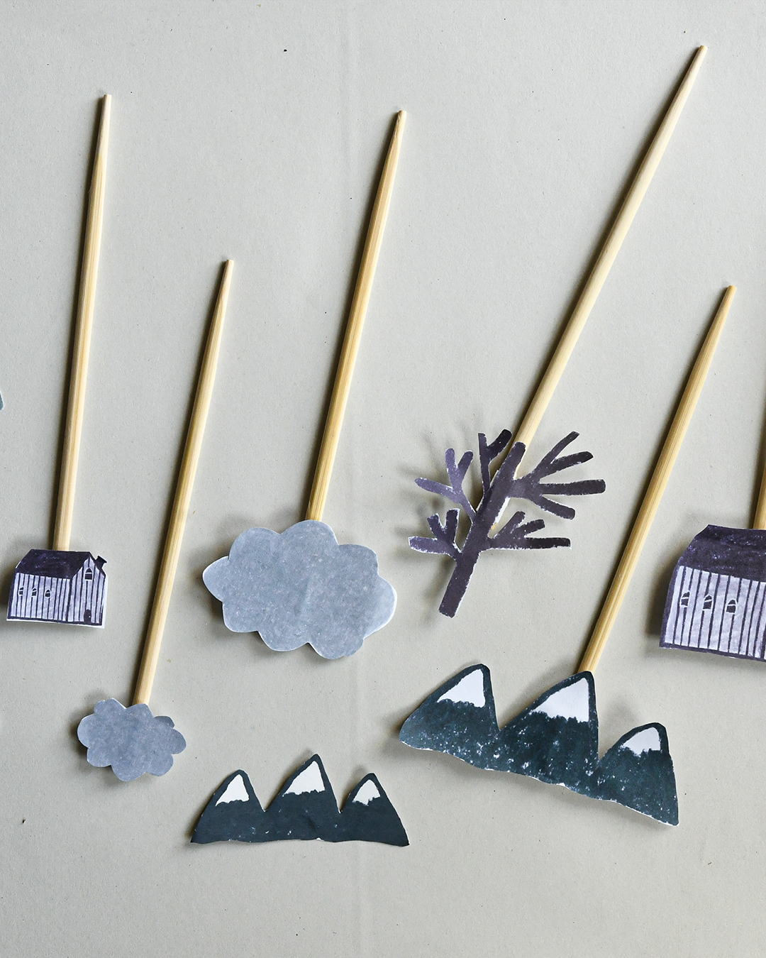 - Glue gun/ or use double-sided sticky tape (for attaching the cut-outs to the chopsticks)