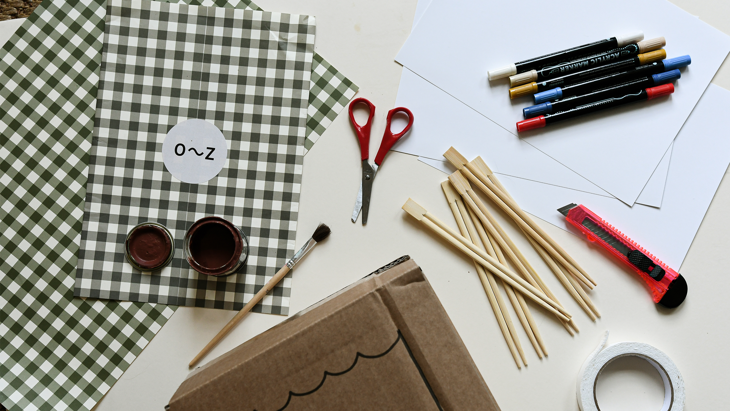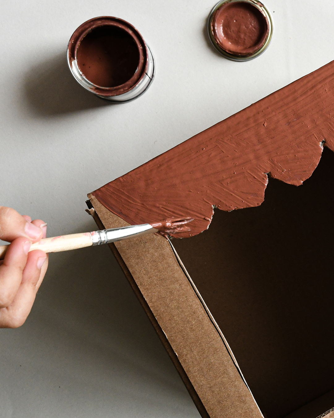 - If you want to add some colour to your stage, then some paint (you can use old paint samples if you have any) or acrylic pens have good coverage over the cardboard