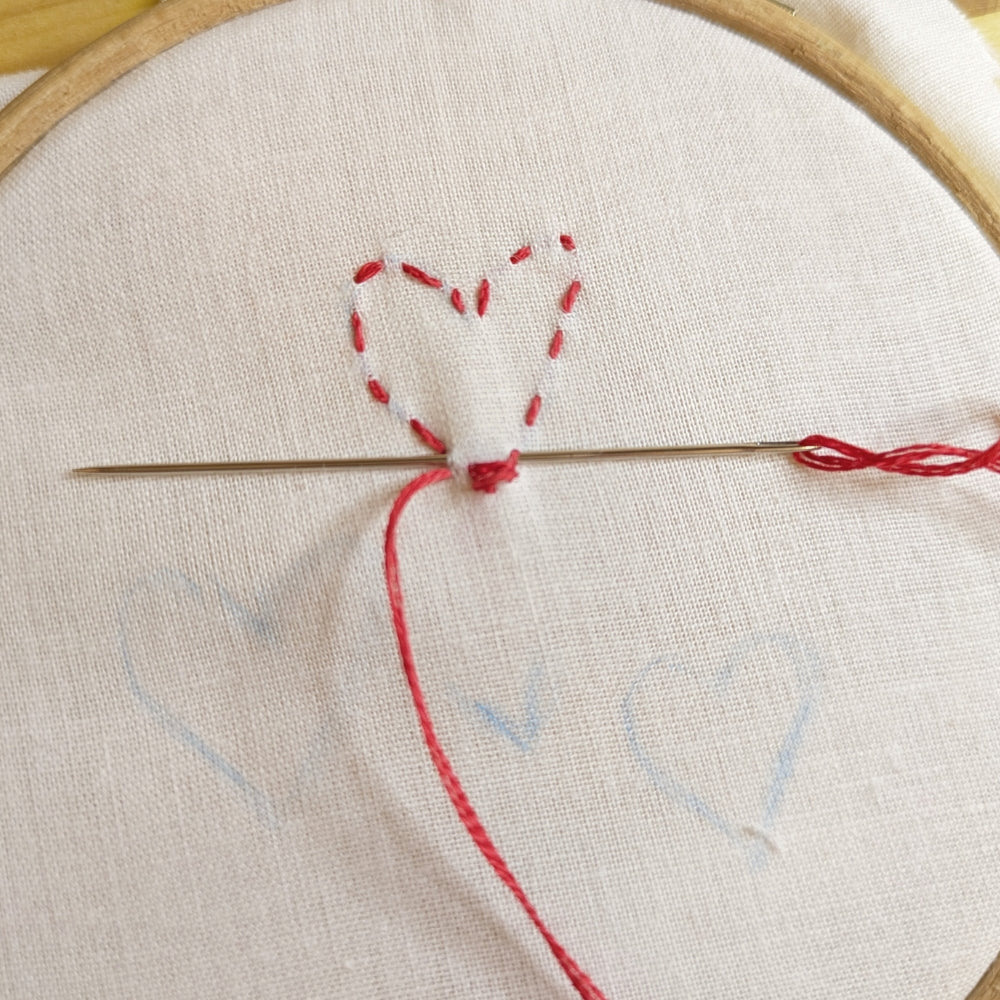 2. Outline the shape with a running stitch, keeping stitches short and neat.