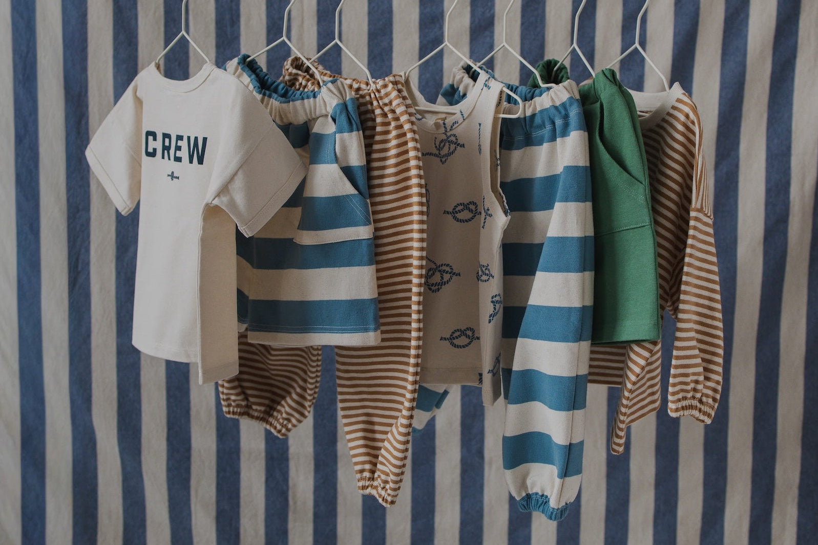 There’s a quiet familiarity in it all- deckchair stripes fading gently in the sun, sailor’s knots tied with care, fabrics that feel lived-in from the very first wear.
