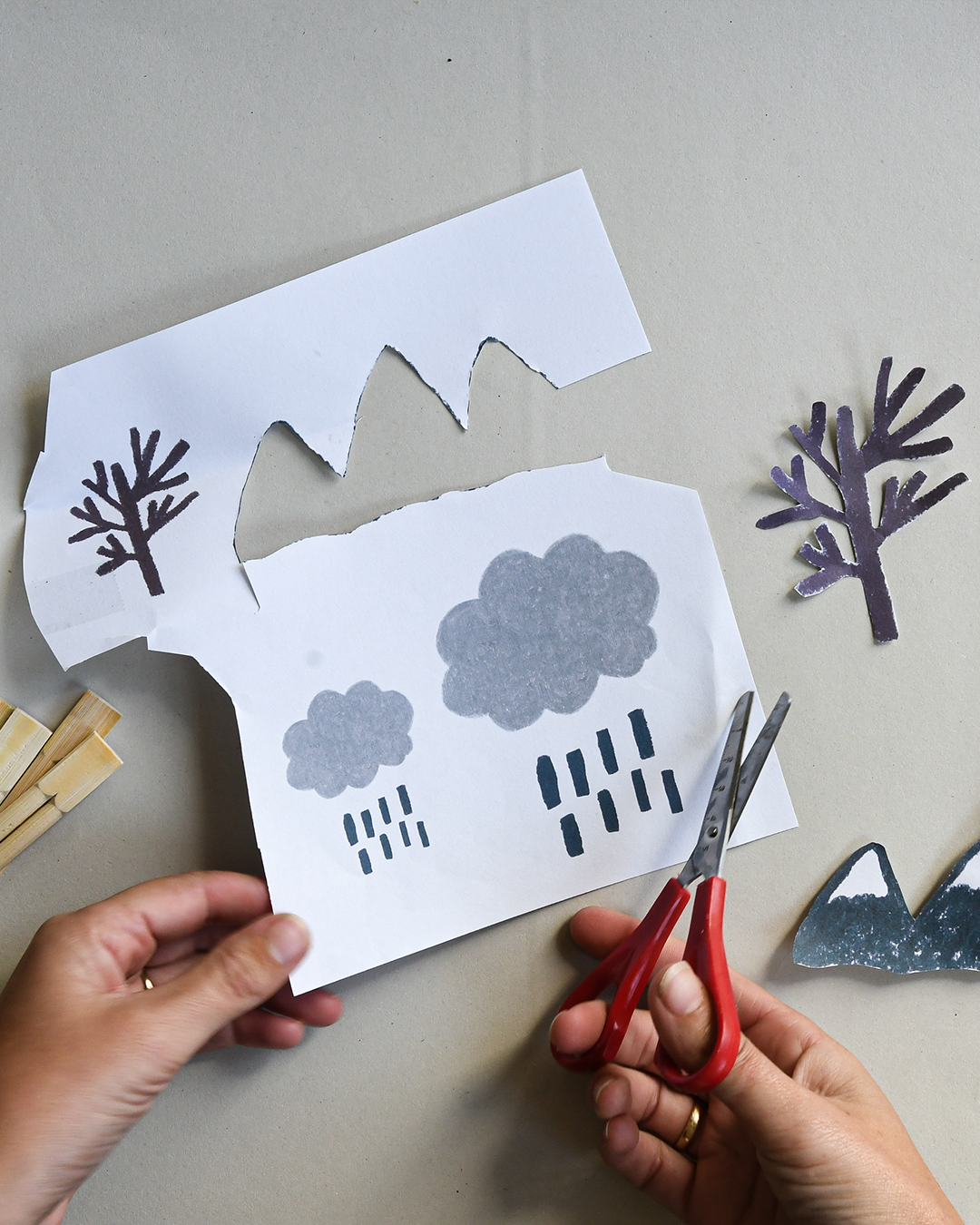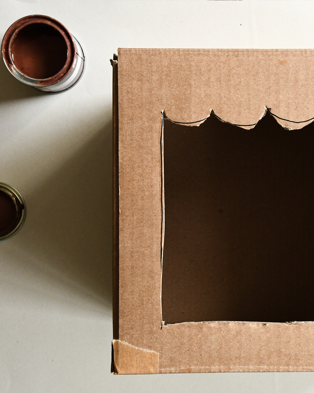 • If you want to add some colour to your stage, then some paint (you can use old paint samples if you have any) or acrylic pens have good coverage over the cardboard